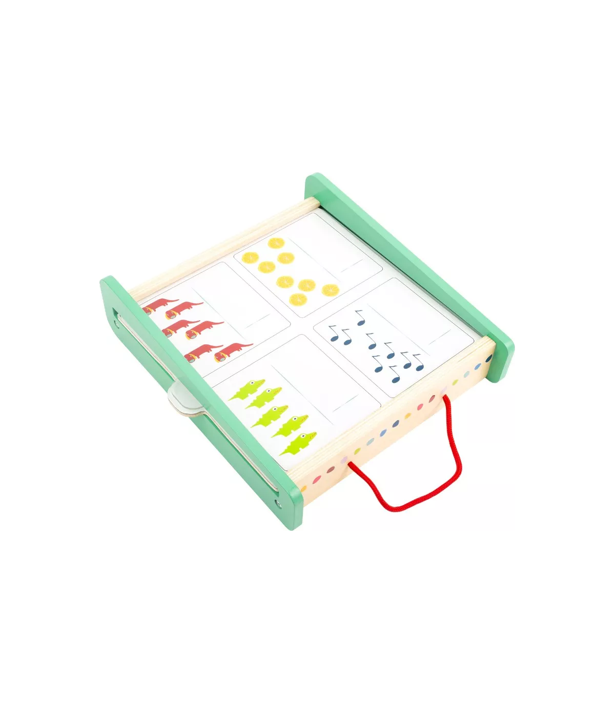 Apprenons ensemble ! La boîte d´apprentissage pratique en bois certifié FSC 100% développe le sens pour les chiffres et les quantités. La boîte contient des gros chiffres, des signes et des plaquettes en couleur. Les cartes magnétiques insérables avec des exercices peuvent être écrites et effacées et servent en même temps de couvercle. Avec le stylo correspondant, elles offrent la possibilité de faire ses propres exercices.