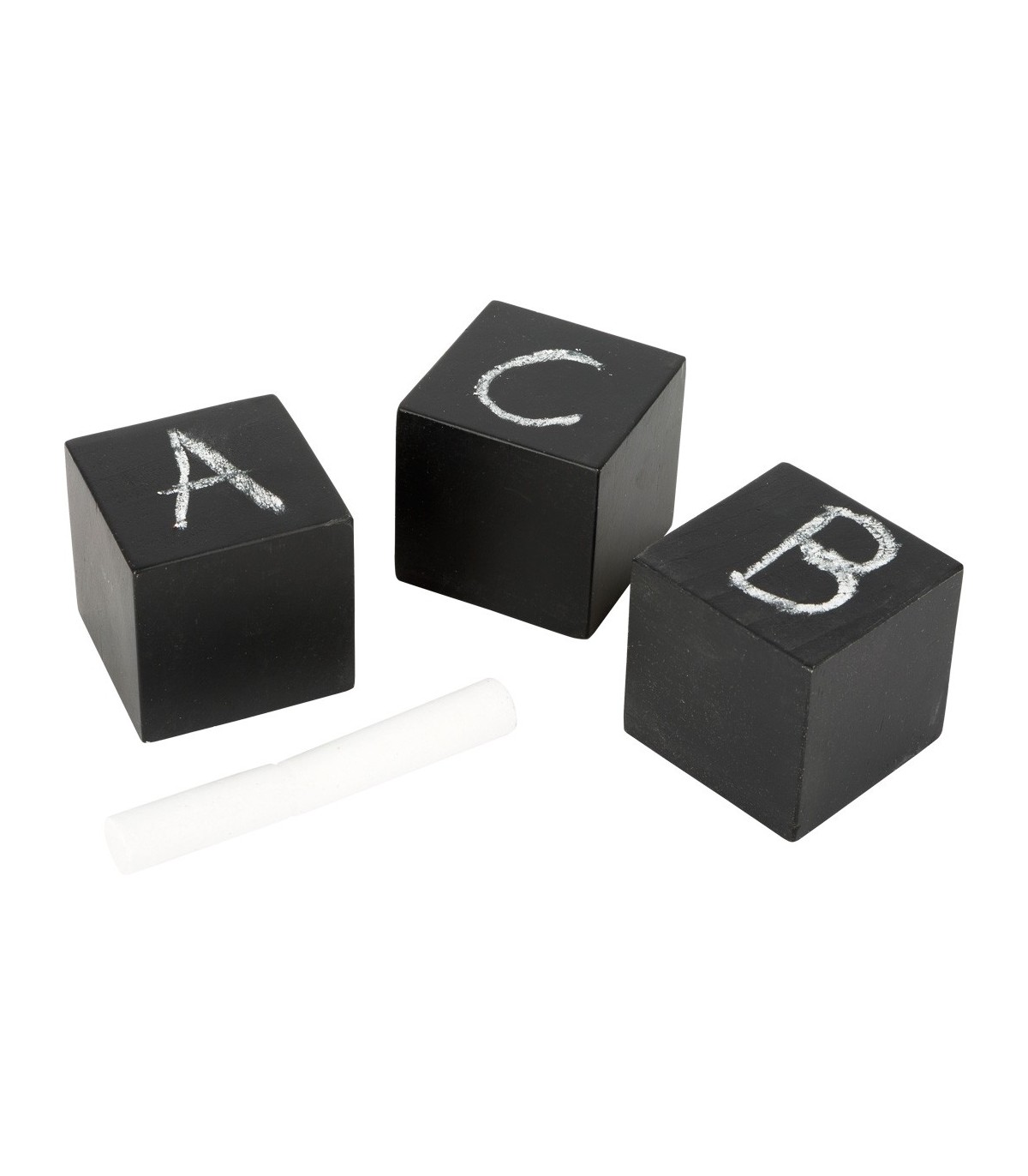 Place à la créativité! Ces cubes en ardoise donnent la possibilité de dessiner individuellement à la craie et peuvent facilement être nettoyés à l'aide d'un chiffon.