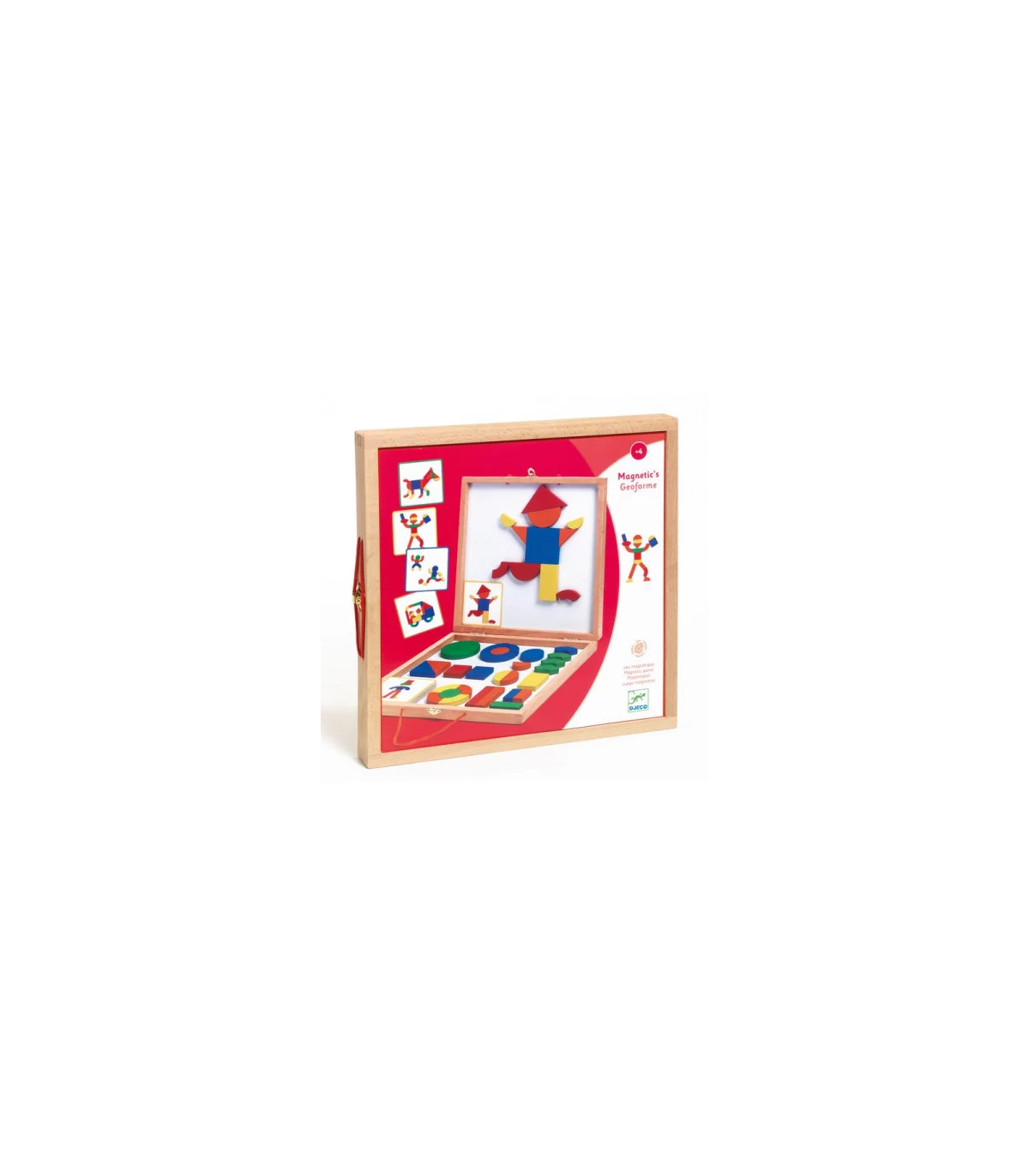Découvrez le Magnetic's Géoforme de Djeco, une jolie valisette en bois contenant des pièces aimantées permettant de reproduire des formes : des personnages, des animaux, des véhicules, des scènes... Un jeu magnétique pour les enfants dès 4 ans.