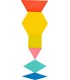 Un jeu de pose coloré à grande échelle ! Ce vaste ensemble de mosaïques en bois permet de poser les formes et les figures les plus diverses. Les 250 pièces de bois de couleurs différentes, réparties en six formes géométriques, permettent de créer une variété de motifs individuels. Le jeu de pose favorise la créativité, entraîne la pensée logique et en même temps la perception spatiale. Des heures de plaisir garanties !