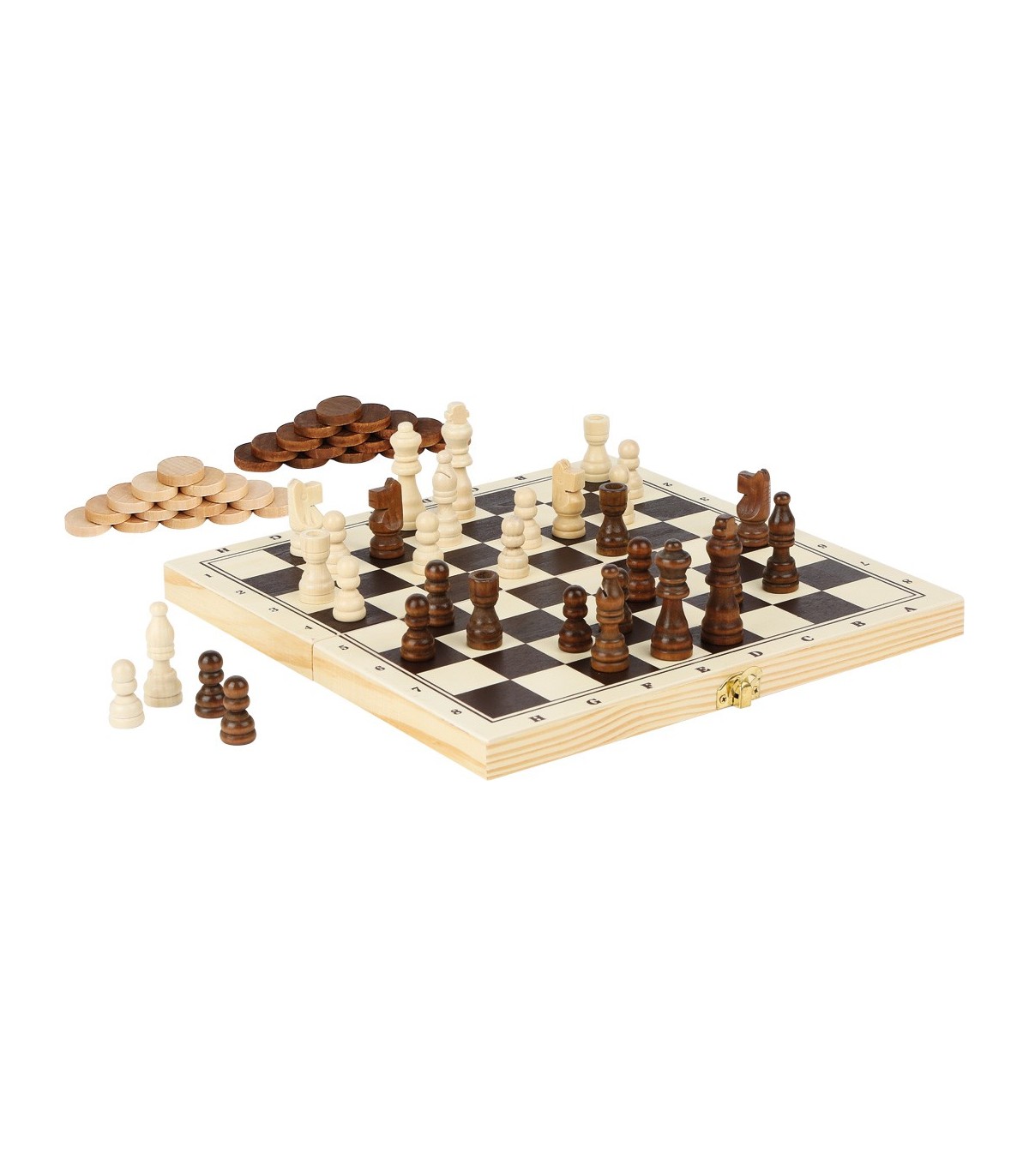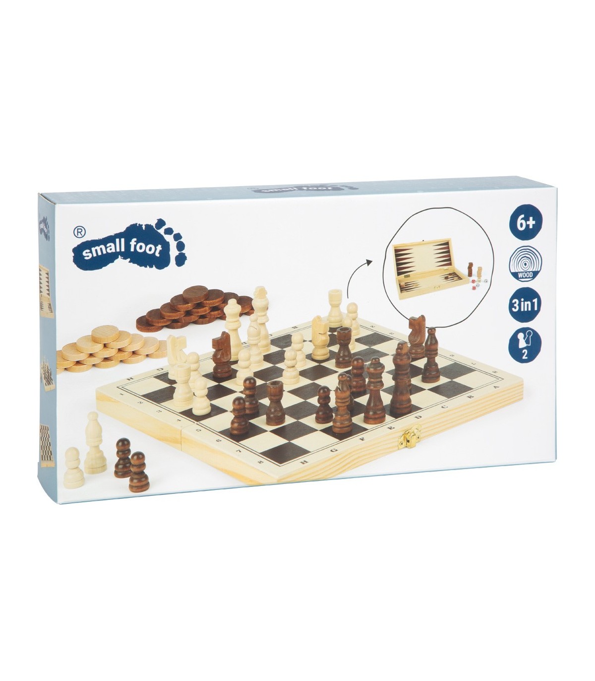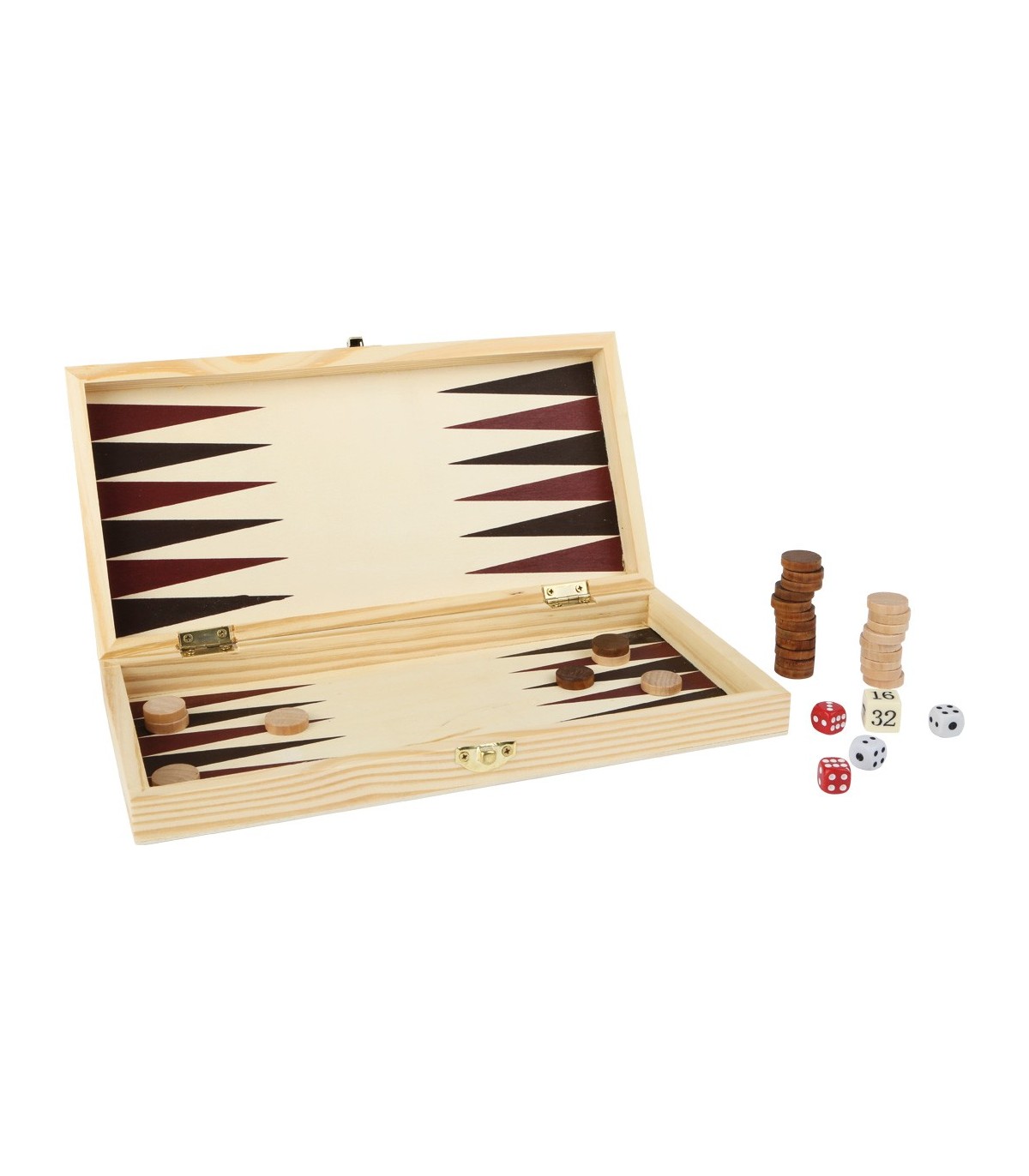 Un bel assortiment de jeux en bois avec jeu d‘échecs, dames, jacquet et des jeux de dés. C‘est parfait pour un divertissant après-midi pluvieux.