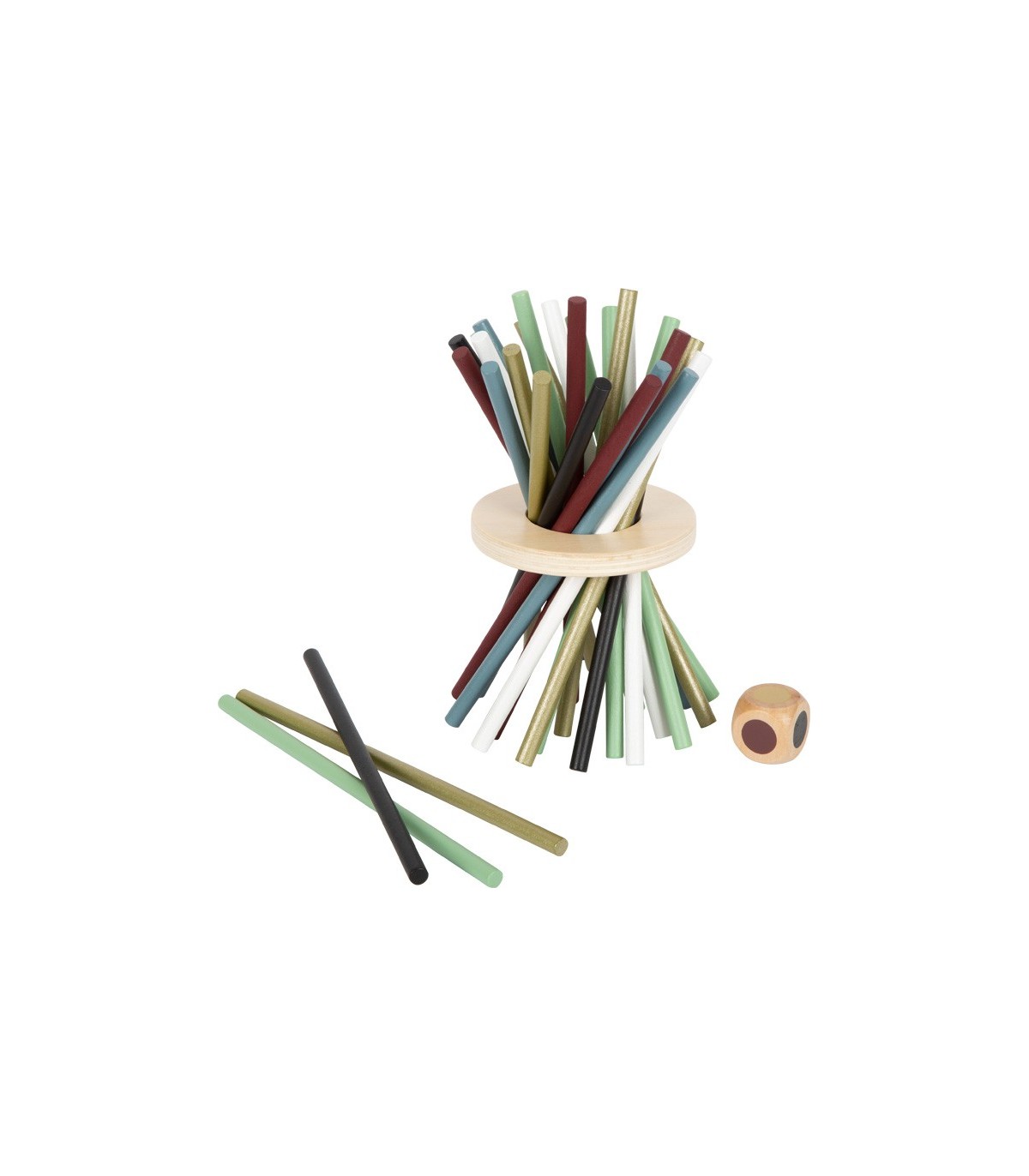 Pratique : les baguettes plus épaisses sont également faciles à saisir pour les jeunes enfants ou les personnes âgées ! Plus : à l'aide de l'anneau en bois, le jeu de mikado classique peut également être comme un objet design exceptionnel sur l'étagère du salon.