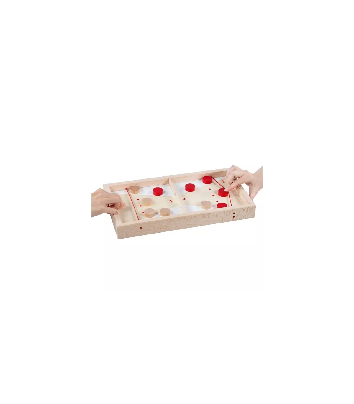 Le jeu de palets « Super Puck » de goki contient deux jeux passionnants qui peuvent être mis en place rapidement en tournant simplement le plateau. Dans « Super Puck », 2 joueurs tentent d'envoyer leurs palets dans le camp adverse le plus rapidement possible. Le mode « Curling » est un peu plus calme, mais tout aussi prenant. Avec autant de joueurs que vous le souhaitez, vous devez atteindre la cible et collecter des points.