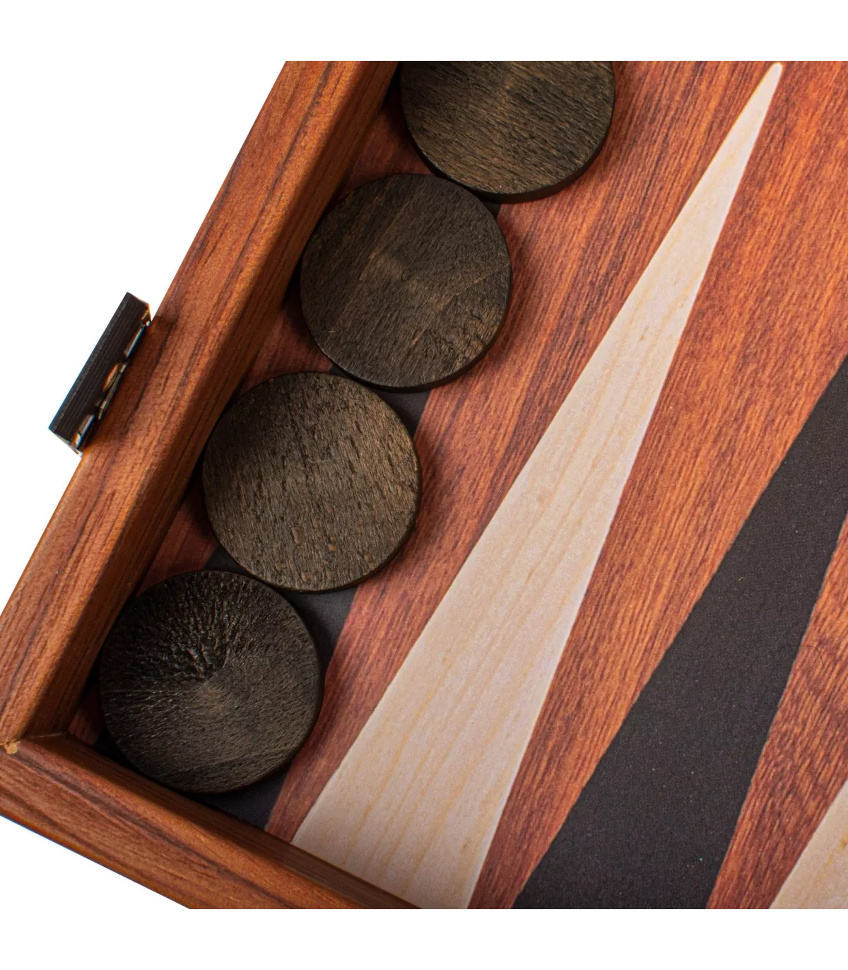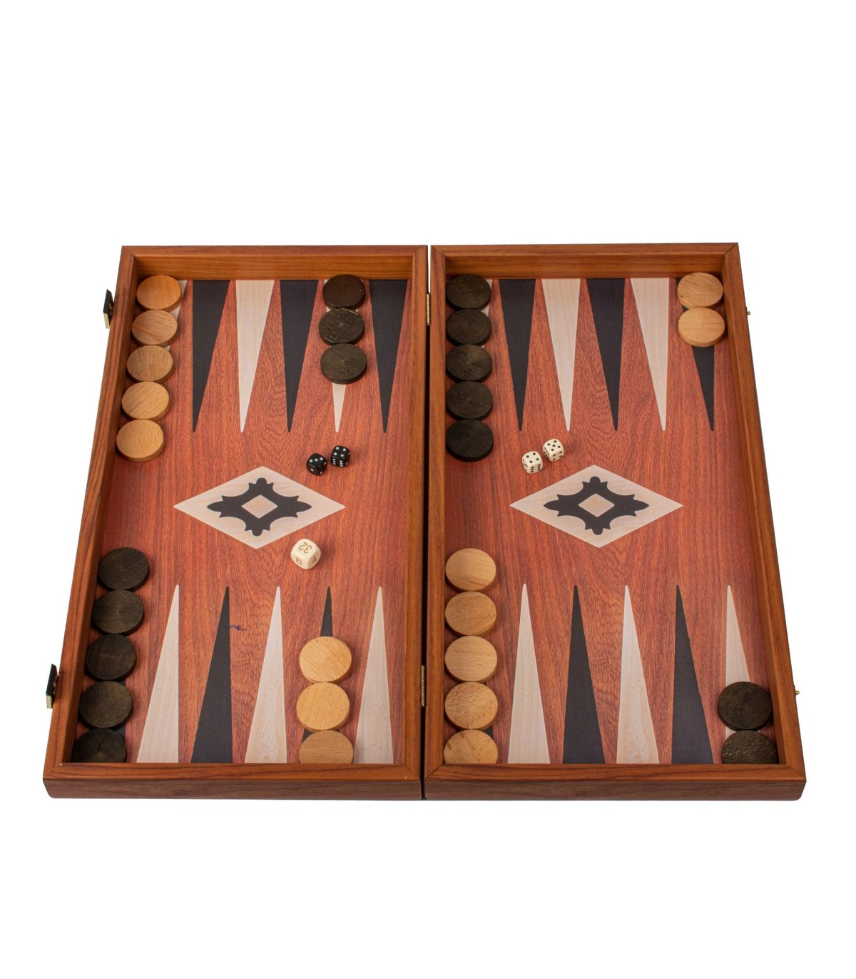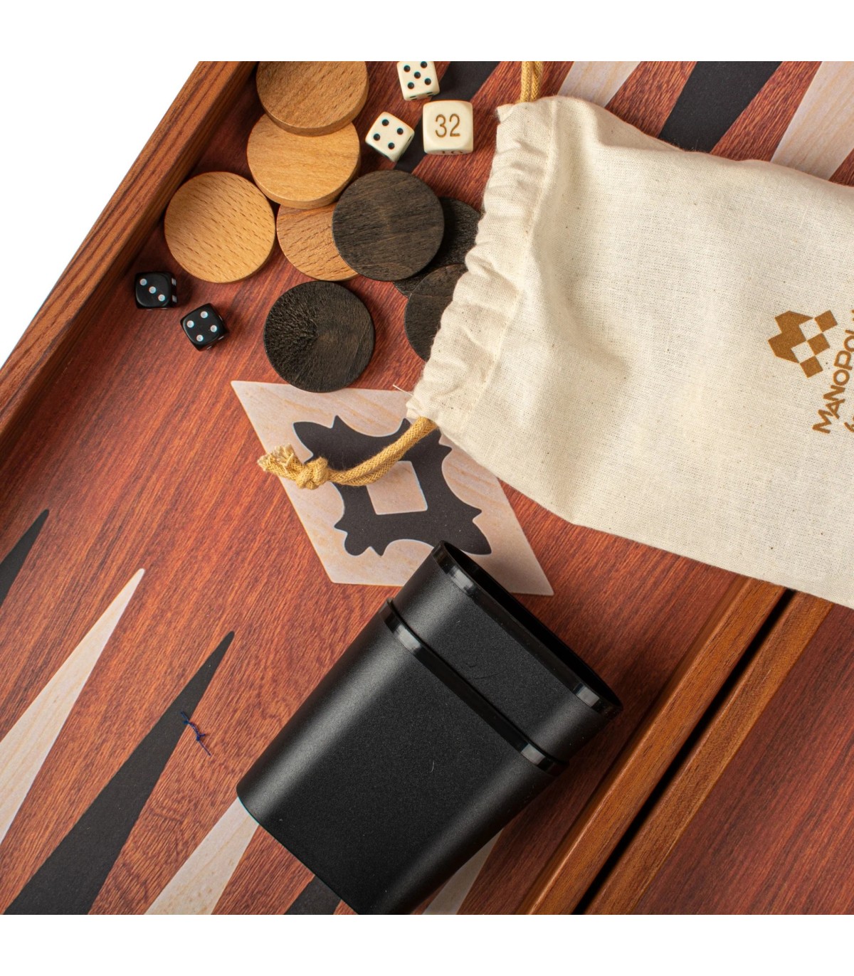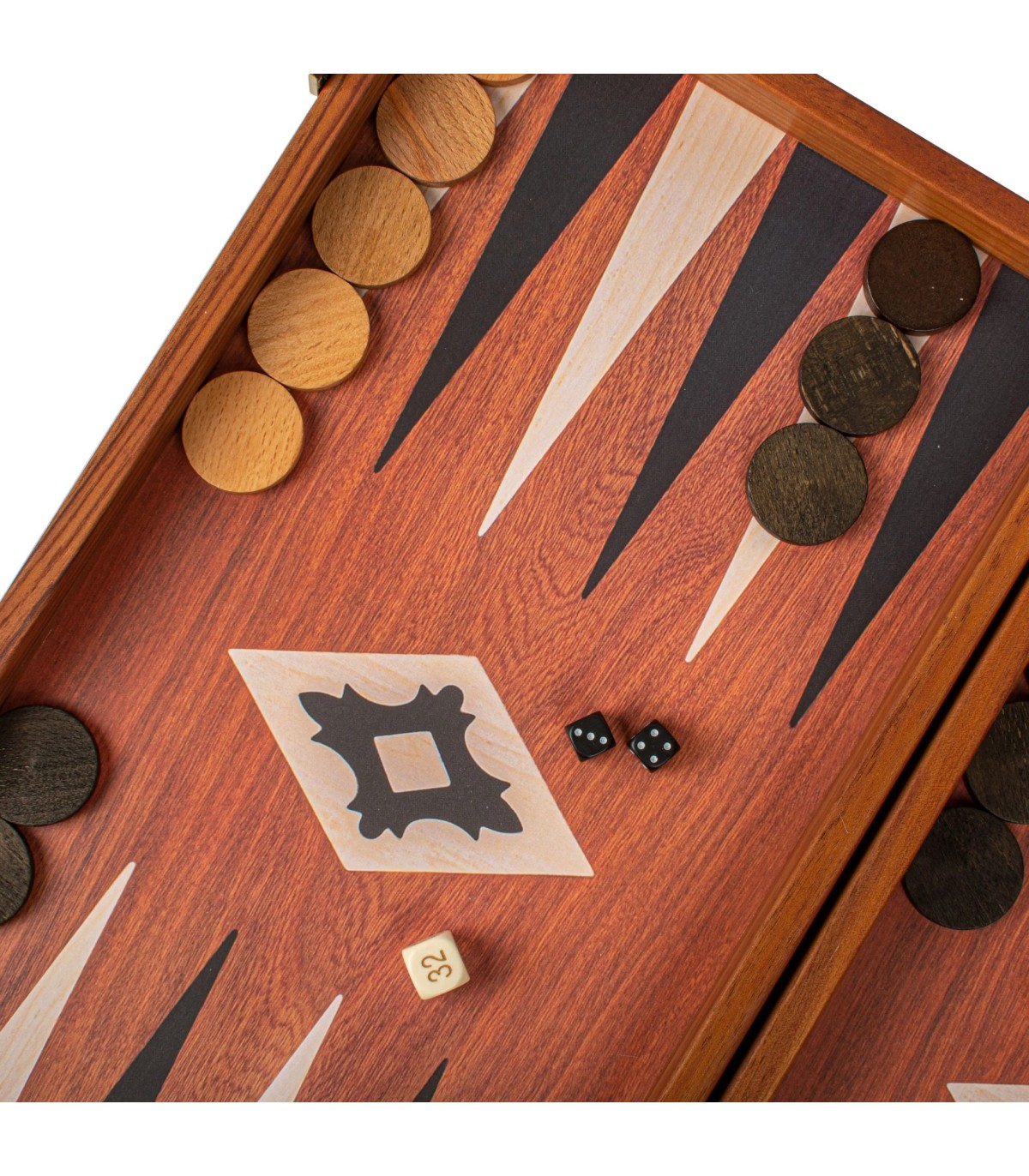 L'ensemble de backgammon de couleur acajou présente une surface de jeu imprimée (non incrustée) qui met en valeur un magnifique motif de grain de bois. Les points contrastés en noir et en chêne offrent un attrait visuel saisissant, améliorant à la fois l'apparence et la jouabilité de la planche.