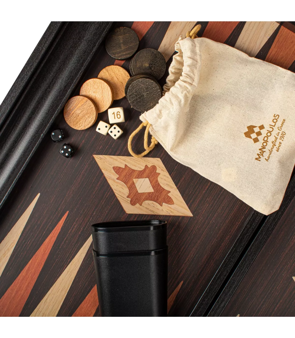 Élevez vos soirées de jeu avec cet ensemble de backgammon en bois de wengé fabriqué à la main avec supports latéraux. Cet ensemble magnifiquement conçu combine des matériaux de qualité avec une esthétique classique et intemporelle, offrant une touche sophistiquée à un prix intelligent. Parfait pour les jeux occasionnels et compétitifs, cet ensemble de backgammon est un ajout luxueux à toute salle de jeux.