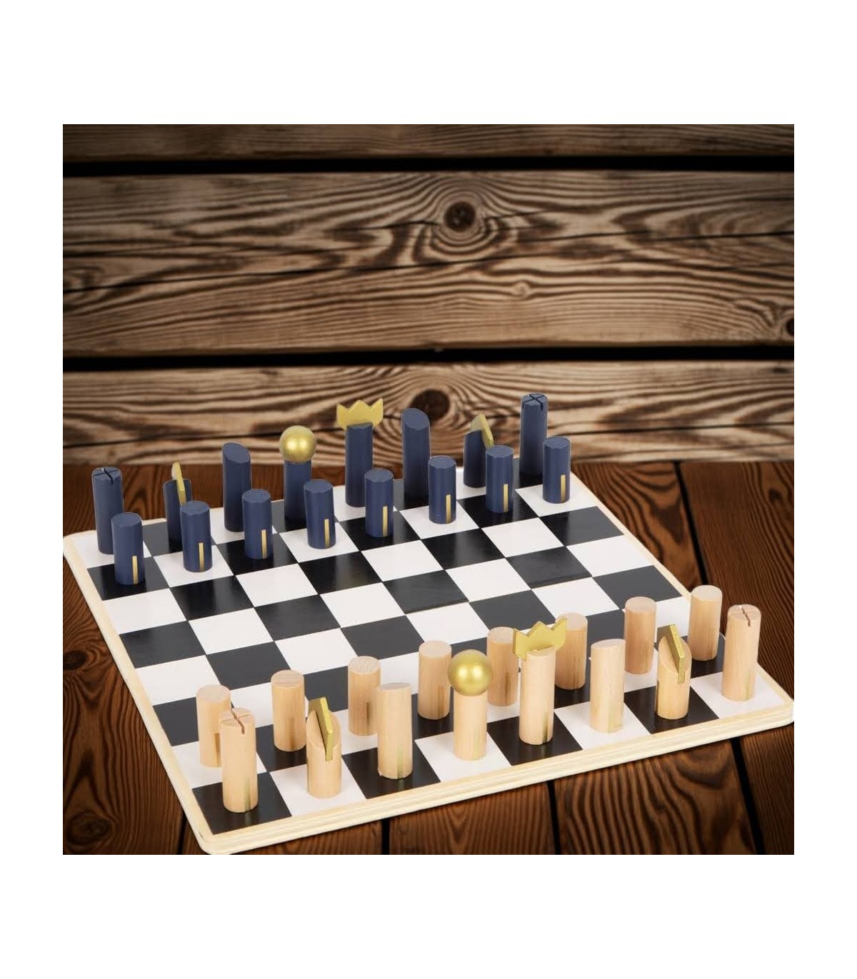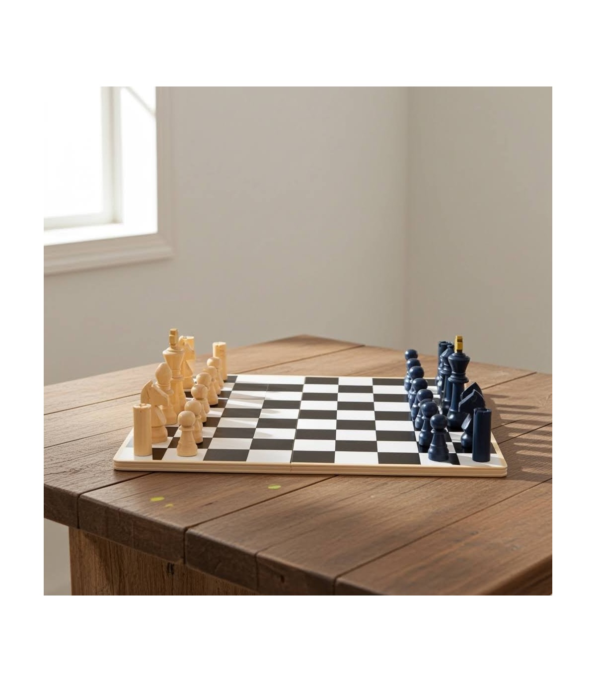 Le look moderne de ce jeu classique fait du Jeu des Rois un accroche-regard extravagant ! Des accents dorés raffinés combinés à un bleu nocturne noble, du noir/blanc et beaucoup de bois naturel s'harmonisent particulièrement bien. Le plateau d'échecs et de backgammon 2-en-1 est divisé en deux parties et peut donc être rangé de manière peu encombrante. Des aimants intégrés garantissent que les deux moitiés du plateau de jeu restent fermement ensemble. Avec une boîte de jeu de haute qualité pour le rangement.