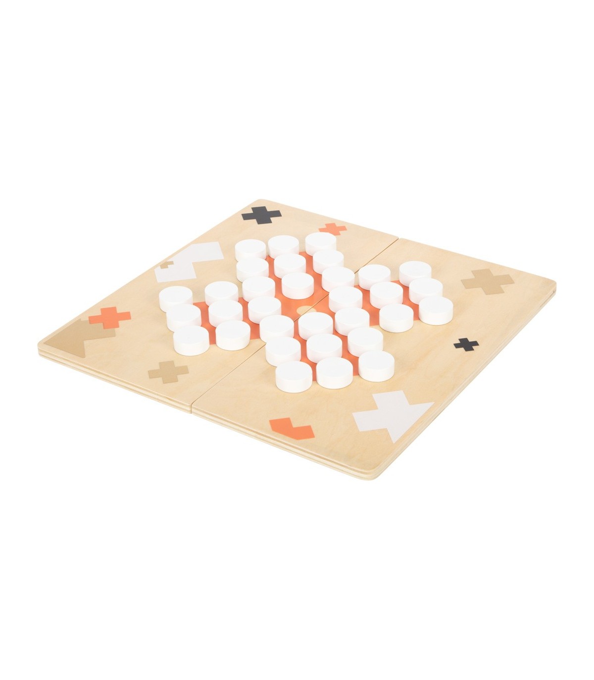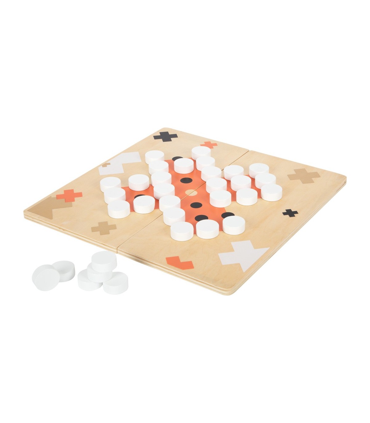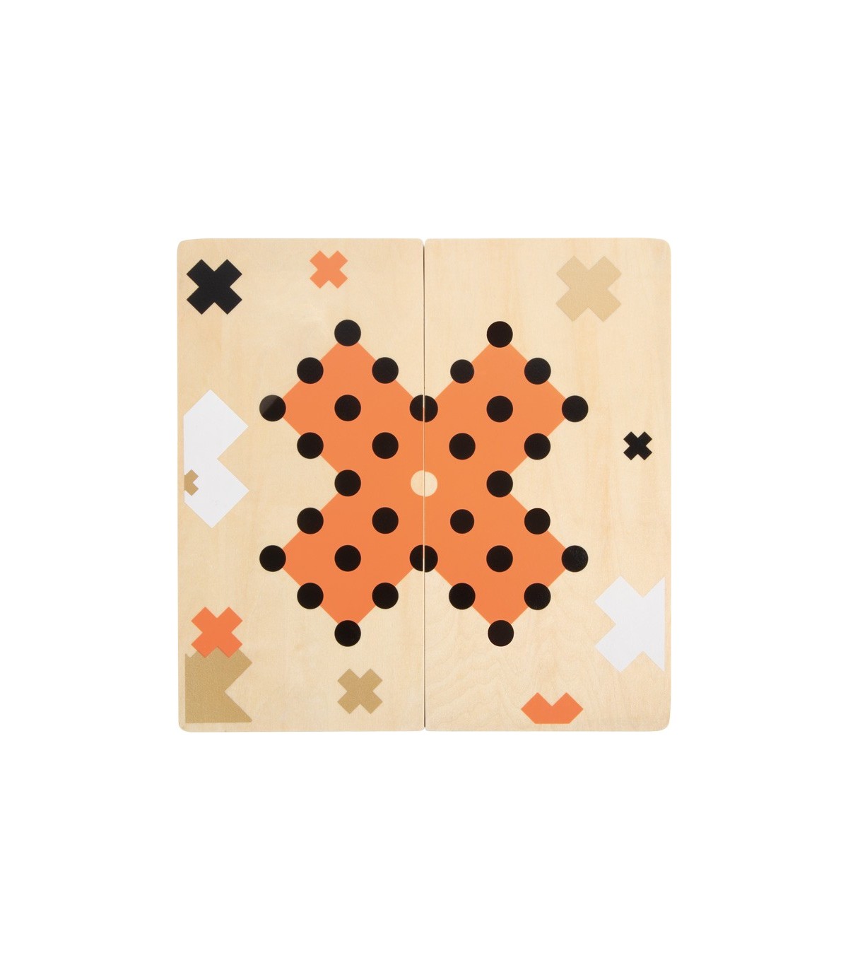 Ces deux jeux classiques, Moulin et Solitaire, convainquent par leur look élégant et moderne et sont assurés d'attirer l'attention lors d'une partie de jeu ! Les accents dorés raffinés sont particulièrement efficaces en combinaison avec du terracotta, le noir/blanc clair et beaucoup de bois naturel. Le plateau de jeu 2-en-1 est divisé en deux parties et peut donc être rangé de manière peu encombrante. Des aimants intégrés garantissent que les deux moitiés du tableau restent fermement ensemble. Avec une boîte de jeu de haute qualité pour le rangement.