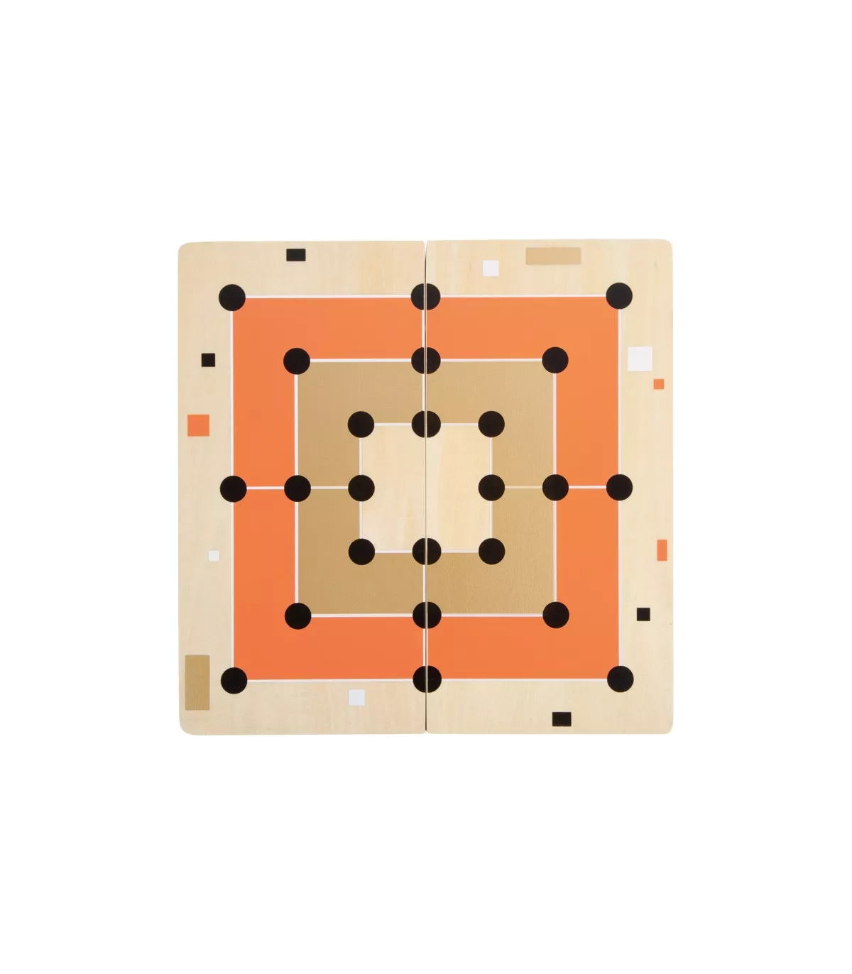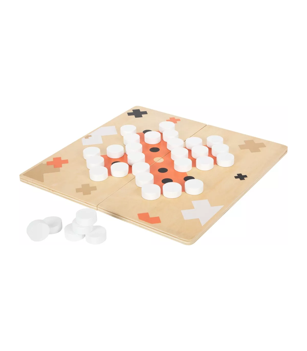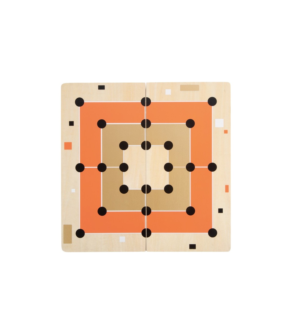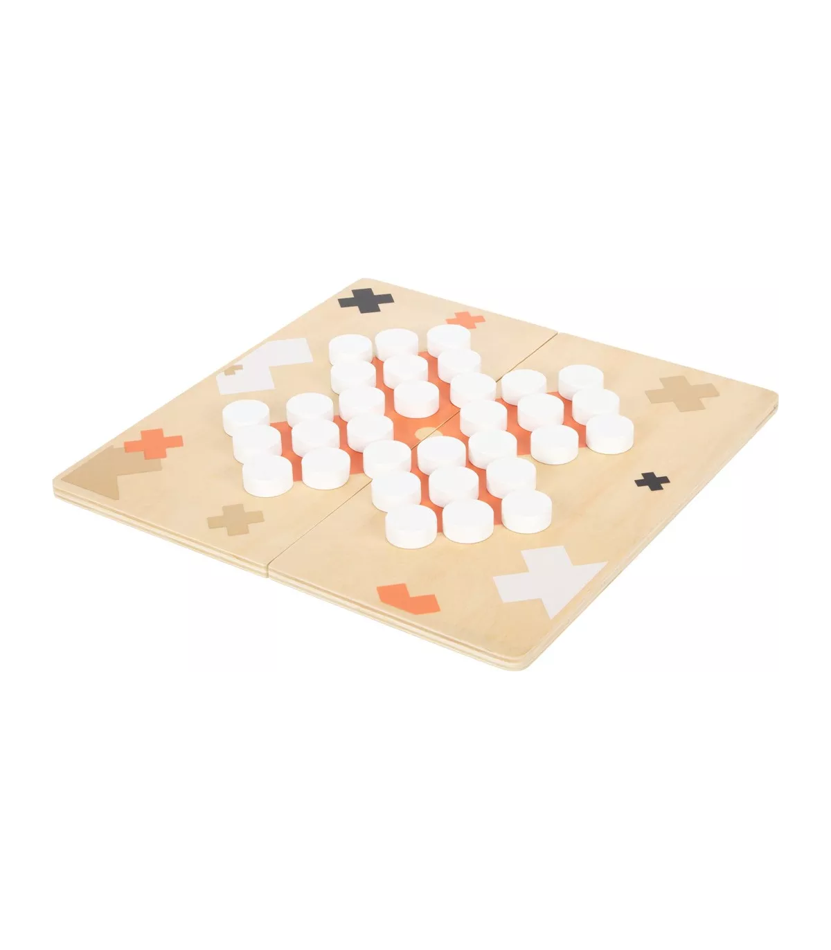 Ces deux jeux classiques, Moulin et Solitaire, convainquent par leur look élégant et moderne et sont assurés d'attirer l'attention lors d'une partie de jeu ! Les accents dorés raffinés sont particulièrement efficaces en combinaison avec du terracotta, le noir/blanc clair et beaucoup de bois naturel. Le plateau de jeu 2-en-1 est divisé en deux parties et peut donc être rangé de manière peu encombrante. Des aimants intégrés garantissent que les deux moitiés du tableau restent fermement ensemble. Avec une boîte de jeu de haute qualité pour le rangement.