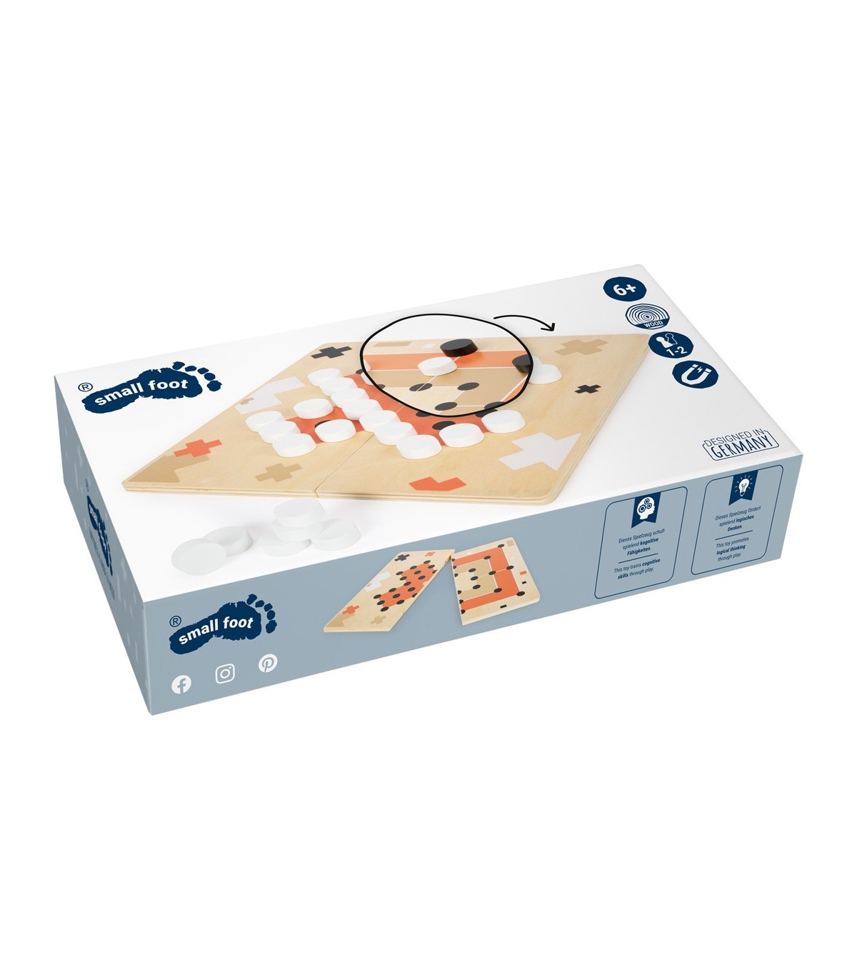 Un jeu de société très stylé au design réduit. Les pièces de jeu en bois massif sont particulièrement agréables au toucher.