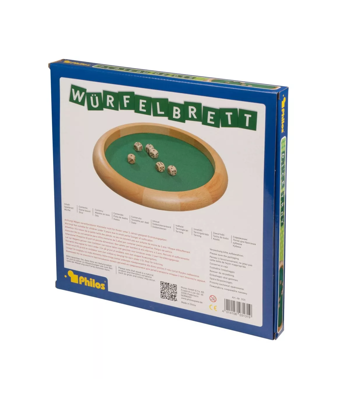 Un plateau de dés, également appelé assiette à dés, est parfaitement adapté à tous les jeux de dés classiques et spéciaux. Bien entendu, un plateau de dés convient également comme complément aux jeux de société classiques. En lançant les dés à l'intérieur du plateau, les dés ne tombent plus par terre ou ne renversent plus les pions sur le plateau de jeu. Le feutre souple amortit en outre le bruit des dés.