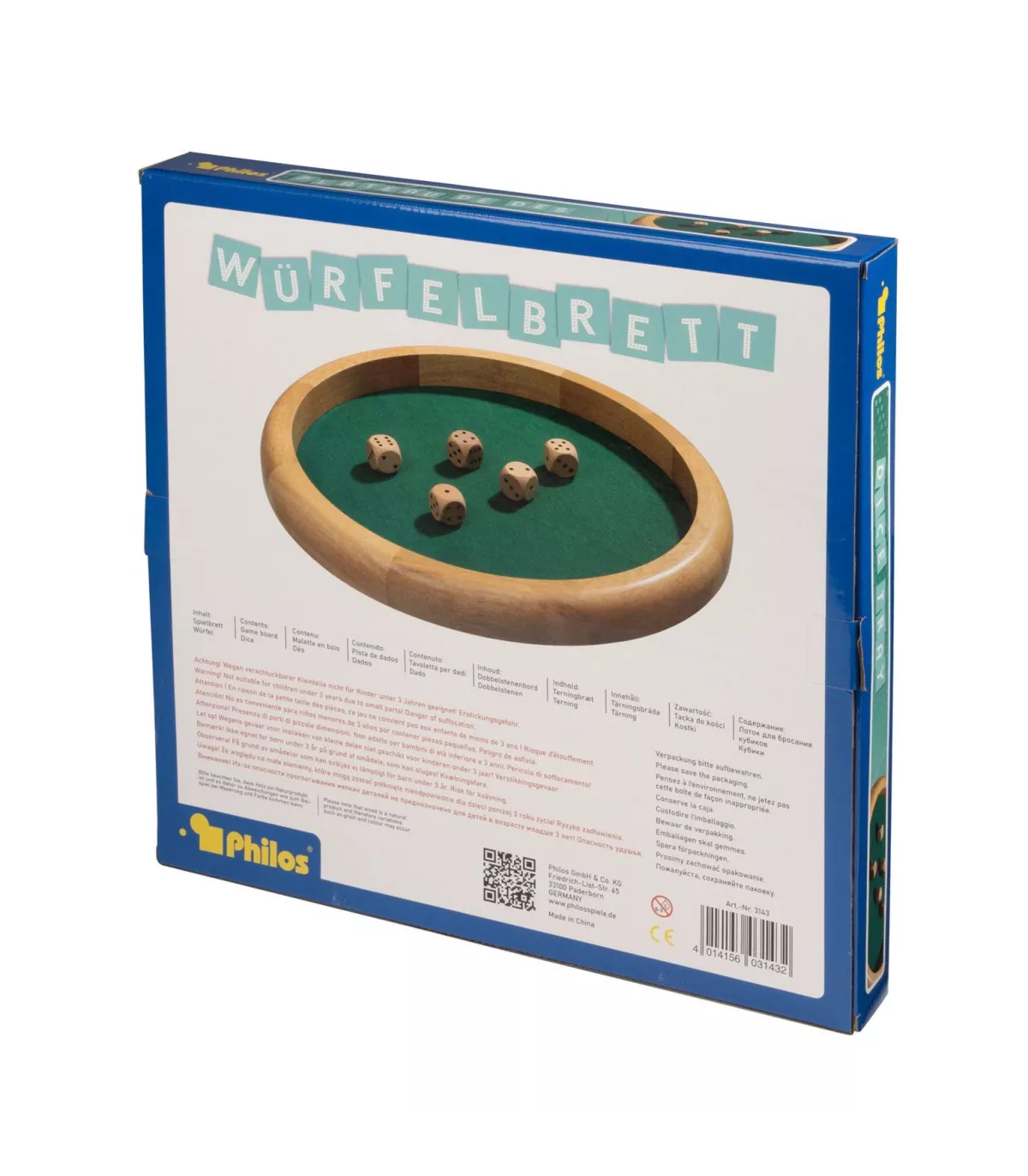 Un plateau de dés, également appelé assiette à dés, est parfaitement adapté à tous les jeux de dés classiques et spéciaux. Bien entendu, un plateau de dés convient également comme complément aux jeux de société classiques. En lançant les dés à l'intérieur du plateau, les dés ne tombent plus par terre ou ne renversent plus les pions sur le plateau de jeu. Le feutre souple amortit en outre le bruit des dés.