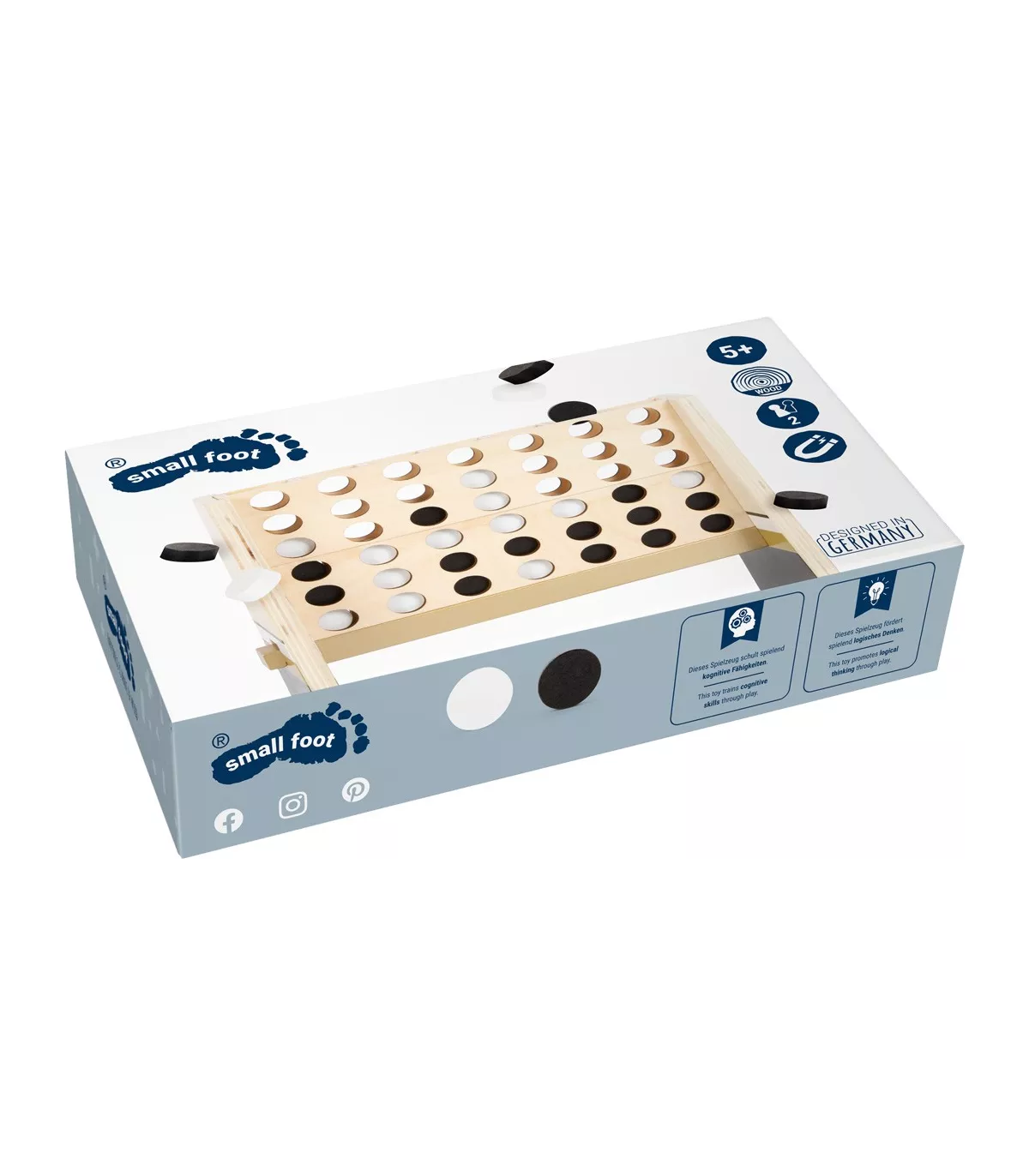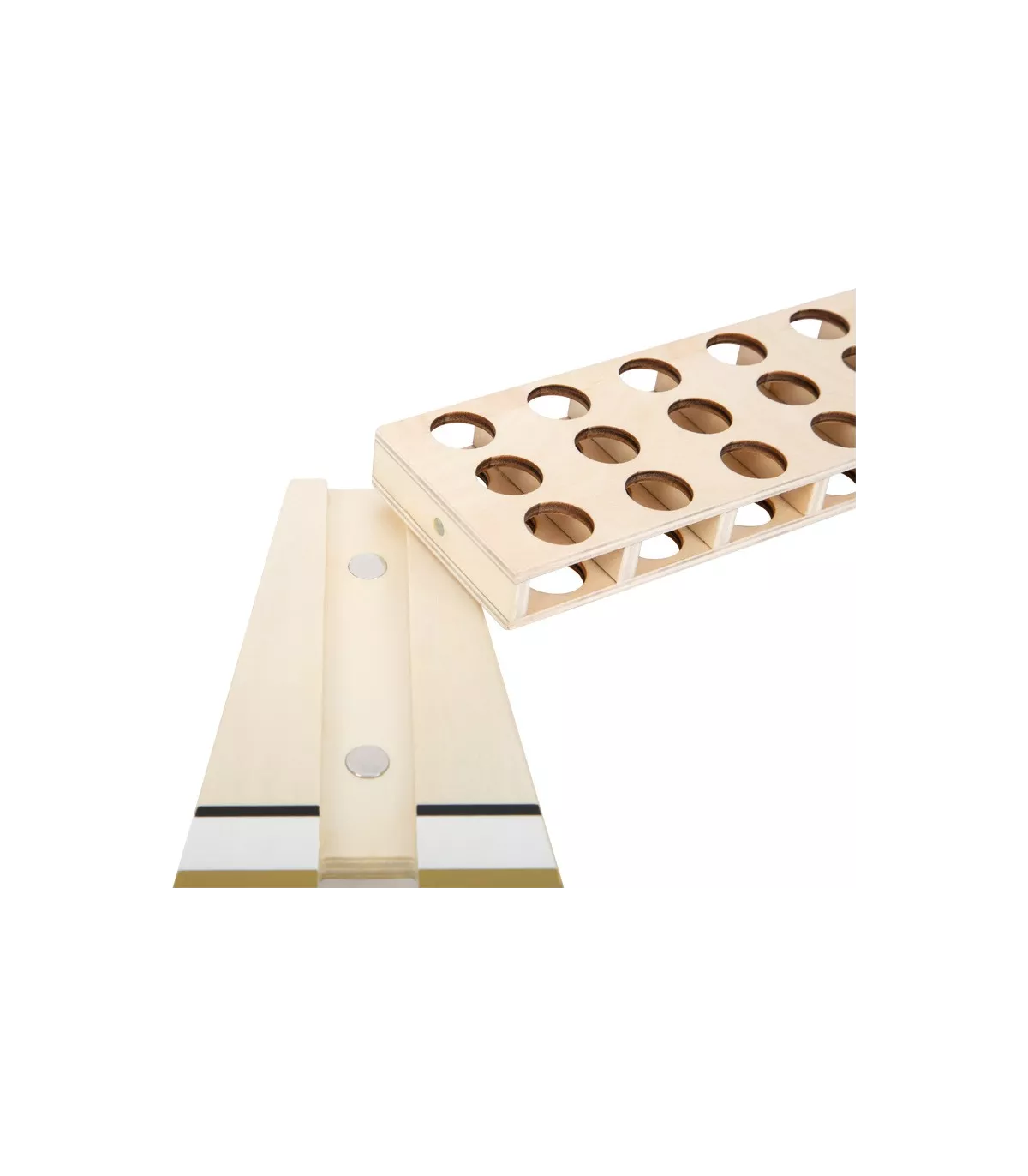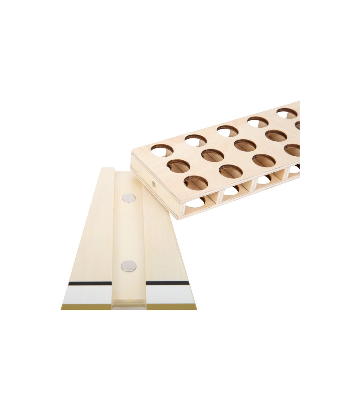 Qui gagne ? Ce classique de stratégie pour deux défie les grands et les petits stratèges. Le look moderne avec des accents dorés en combinaison avec du noir simple, du blanc pur et beaucoup de bois naturel fait de ce "Puissance 4" de la série de jeu "Gold Edition" un accroche-regard de toute collection de jeux ! Point fort : les aimants intégrés au cadre facilitent le montage et permettent un rangement particulièrement peu encombrant. Avec une boîte de jeu de haute qualité pour le rangement.
