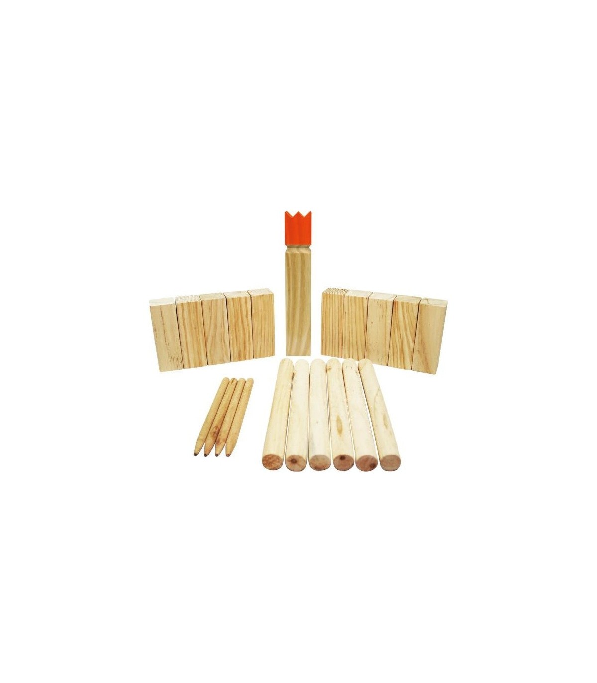 Le kubb, aussi appelé échecs vikings, est un jeu d'adresse d'extérieur pour 2 à 12 joueurs. Son nom vient du suédois « kubbar », qui signifie bloc de bois. Le jeu comprend un roi, quatre piquets, dix blocs de bois et six bâtons de lancer, tous fabriqués en bois certifié FSC. Il est livré avec un sac en coton biologique et les règles du jeu.